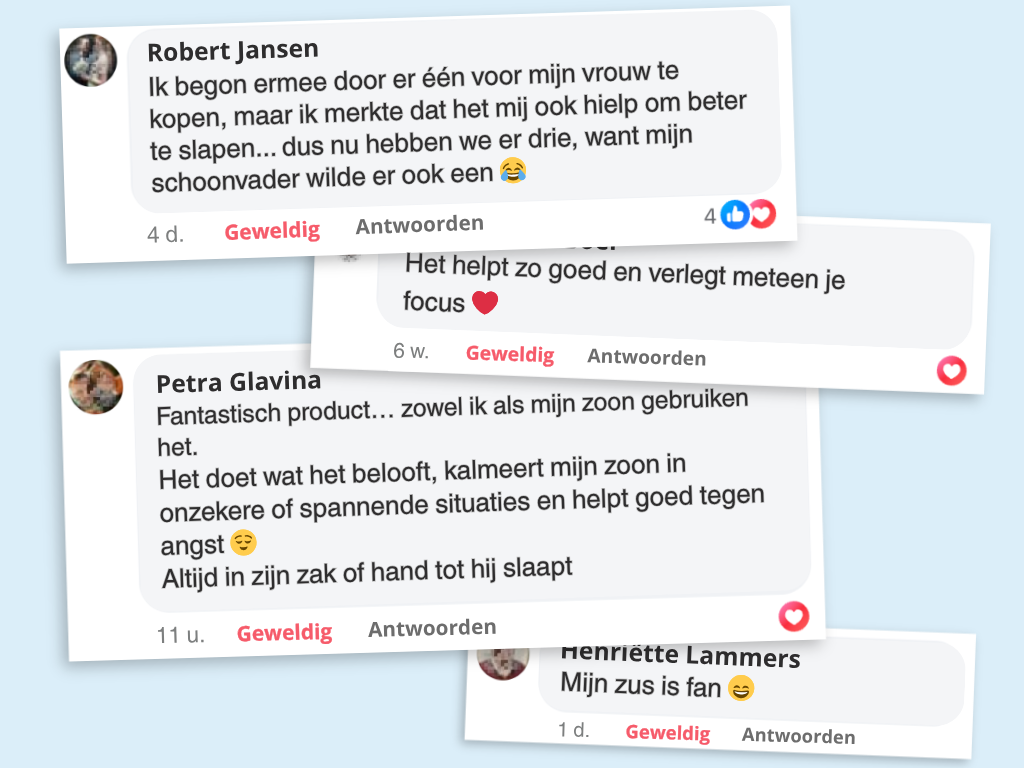 Veel gebruikers geven aan dat ze meer rust en ontspanning ervaren en de PulsRust⢠gebruiken als een natuurlijk hulpmiddel naast hun gebruikelijke manieren om met onrust en zorgen om te gaan â zoals gesprekken, therapie of andere technieken.