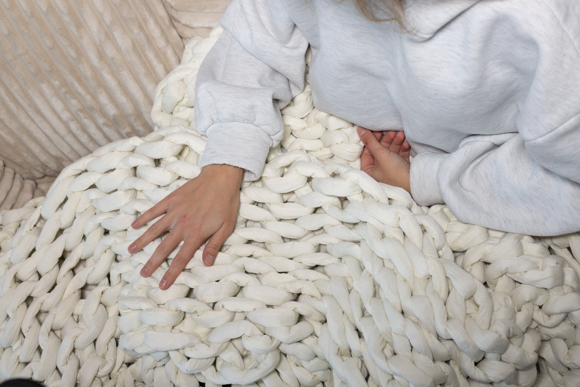 Gemaakt van luxueus, zacht materiaal en geweven zodat het gewicht van 5 kg gelijkmatig wordt verdeeld - zonder korrels of bolletjes.